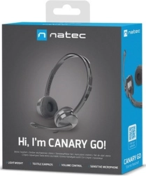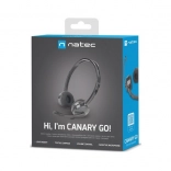 Écouteurs avec le logo 'Natec' visible sur l'écouteur. Ils offrent un bandeau réglable pour un ajustement parfait.