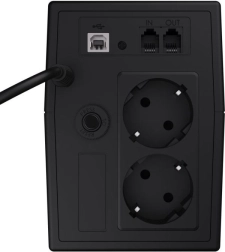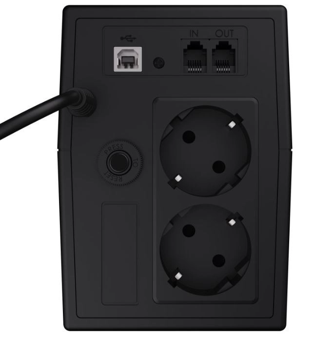 Deux prises d’alimentation sont complétées par un port USB et une paire RJ‑45 (IN/OUT) pour la protection contre les surtensions du réseau de données. Vos appareils sont protégés non seulement contre les coupures, mais aussi contre les pics sur l’alimentation et sur le réseau.