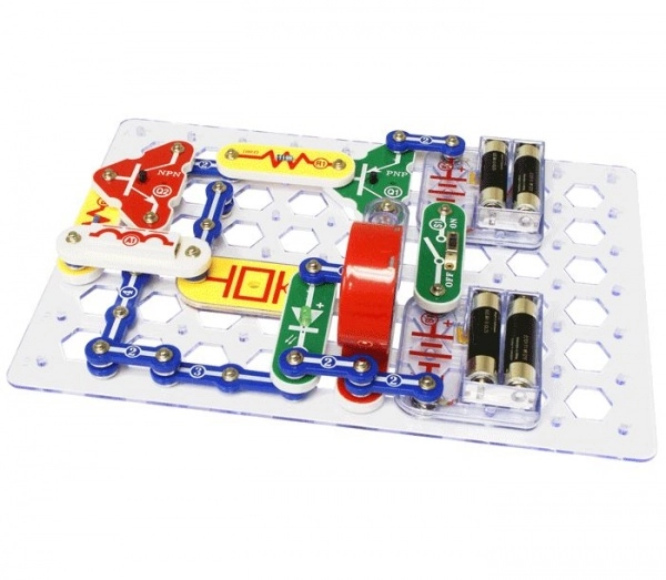 Les composants se clipsent simplement sur une plaque transparente. Le codage couleur et les schémas clairs garantissent un montage rapide et correct.