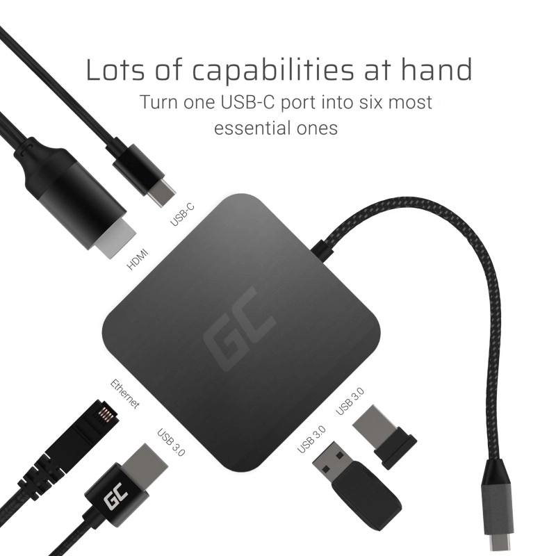 Maximisez la connectivité avec une seule solution. Le GREEN CELL 6‑en‑1 ajoute tout ce dont vous avez besoin : transfert rapide via USB 3.0, réseau stable grâce au Gigabit Ethernet, image nette avec HDMI jusqu’en 4K et charge simultanée via USB‑C Power Delivery jusqu’à 87 W. Parfait pour les ultrabooks comme APPLE MacBook, DELL XPS, ASUS ZenBook, LENOVO ThinkPad et autres appareils dotés d’un port USB‑C.