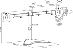 Support de bureau double pour moniteurs permet un réglage flexible de la position pour deux écrans de 15'' à 32''. Grâce aux fonctions d’inclinaison, de rotation et de réglage en hauteur, il offre une ergonomie idéale pour une posture de travail saine.