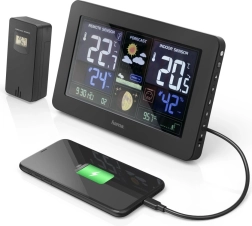 Cette station météorologique numérique est idéale pour tous ceux qui souhaitent disposer d’informations météo précises directement à la maison. Elle est équipée d’un écran couleur sur lequel vous pouvez suivre la température et l’humidité intérieures et extérieures, les phases de la lune et la pression atmosphérique.