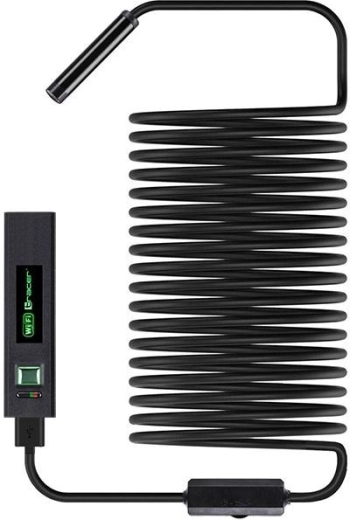 Le coffret comprend des embouts pratiques – crochet, aimant et miroir qui permettent non seulement de voir, mais aussi de récupérer de petits objets dans des espaces étroits. Un capuchon d’étanchéité permet en outre l’inspection en environnement humide ou sous l’eau. La batterie Li‑ion intégrée 3,7 V / 500 mAh assure un fonctionnement mobile sans câbles.