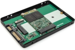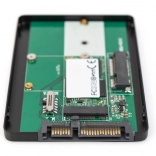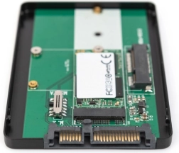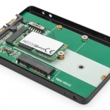 L’adaptateur universel DIGITUS transforme votre SSD M.2 (B‑Key/B+M‑Key) ou mSATA en un disque SATA 2,5" standard avec interface SATA III 6 Gbit/s. Il offre un débit en lecture jusqu’à 520 Mo/s, un boîtier fermé en aluminium pour un meilleur refroidissement et une meilleure protection, la prise en charge du DEVSLP et un réglage facile via interrupteurs DIP. Compatible avec la plupart des ordinateurs portables de 7 mm d’épaisseur ainsi que les PC de bureau, et permet le démarrage depuis le SSD.
