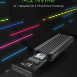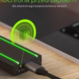 Boîtier externe compact pour SSD M.2 NVMe en aluminium robuste avec ailettes de refroidissement innovantes et éclairage RGB. Offre USB 3.1 Gen 2 (10 Gb/s) via USB‑C et USB‑A, prise en charge des formats 2230/2242/2260/2280, interrupteur de protection en écriture et compatibilité avec Windows et macOS pour des transferts de données rapides et sécurisés.