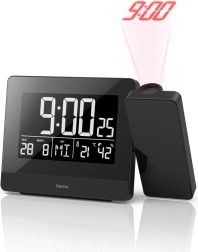 Profitez d’un confort maximal pour lire l’heure même au milieu de la nuit. Le projecteur orientable sur 360° projette l’heure au plafond ou sur le mur exactement où vous en avez besoin. L’horloge radio-pilotée DCF assure une synchronisation automatique précise, avec la possibilité d’ajuster manuellement le fuseau horaire si nécessaire.