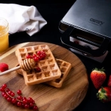 Nous savons depuis longtemps que les plats préparés à la maison sont bien plus sains et plus riches en nutriments. À l’ère des aliments transformés proposés à chaque coin de rue, cela vaut aussi pour les douceurs. Le gaufrier compact de 1600 W, avec un niveau de brunissage réglable, est un appareil intéressant qui nous permet de préparer notre en-cas préféré à partir d’ingrédients frais et sûrs ! De plus, vous pouvez expérimenter et ajouter à la pâte vos épices préférées, comme le sucre vanillé ou la cannelle, ce qui ne fera que rehausser le goût et l’arôme des gaufres. C’est également l’occasion de préparer d’autres gourmandises salées. En choisissant certaines garnitures, vous décidez de vous laisser aller à la folie culinaire (confiture, chocolat, chantilly) ou de faire attention aux calories (chantilly allégée, noix, fruits frais) ! Des en-cas ainsi préparés raviront les grands et les petits amateurs de douceurs et de viennoiseries chaudes !