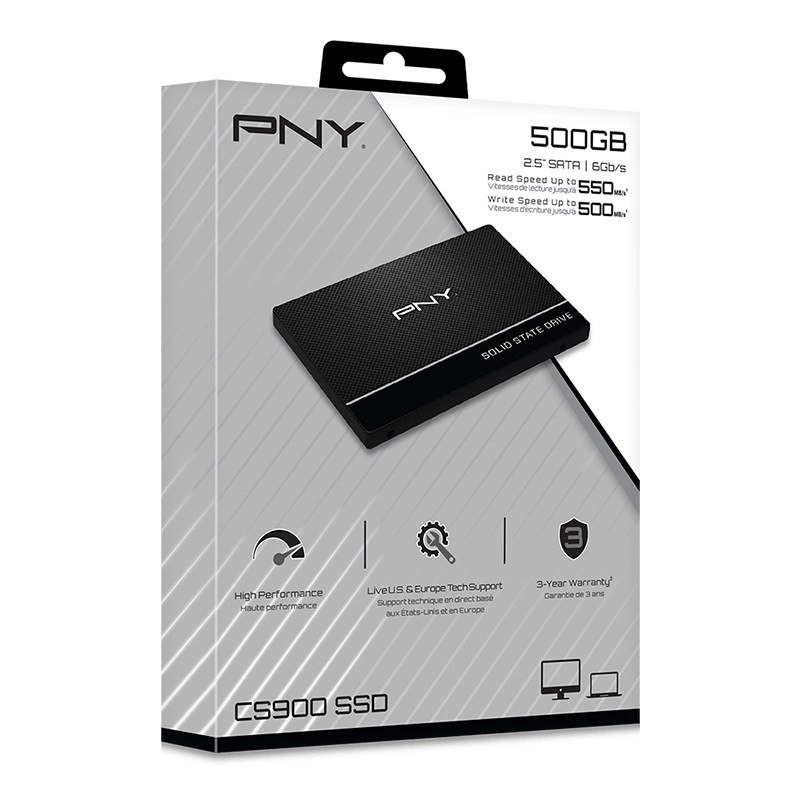 Améliorez la vitesse de votre ordinateur avec le SSD PNY CS900. Il offre un débit séquentiel en lecture jusqu’à 550 Mo/s et en écriture jusqu’à 500 Mo/s, un démarrage du système plus rapide, un lancement rapide des applications et un fonctionnement fiable, silencieux et économe en énergie.