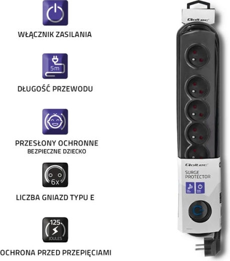 Multiprise parafoudre pratique avec 6 prises et câble de 5 m pour une alimentation sûre et confortable de plusieurs appareils. Elle offre un interrupteur au pied Quick Switch avec rétroéclairage, une protection contre les surtensions, des sécurités enfants et un matériau ininflammable pour une sécurité maximale à la maison, au bureau comme à l’atelier.