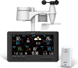 Cette station météo moderne avec connexion Wi‑Fi et grand écran LCD de 21,4 cm fournit des informations précises et actualisées sur la météo à l’intérieur comme à l’extérieur. Grâce à la transmission de données en ligne et à l’affichage sur mobile ou ordinateur, vous avez toujours sous la main la température, l’humidité, le vent et les précipitations. Idéale pour les foyers, les passionnés de météo et la maison intelligente.