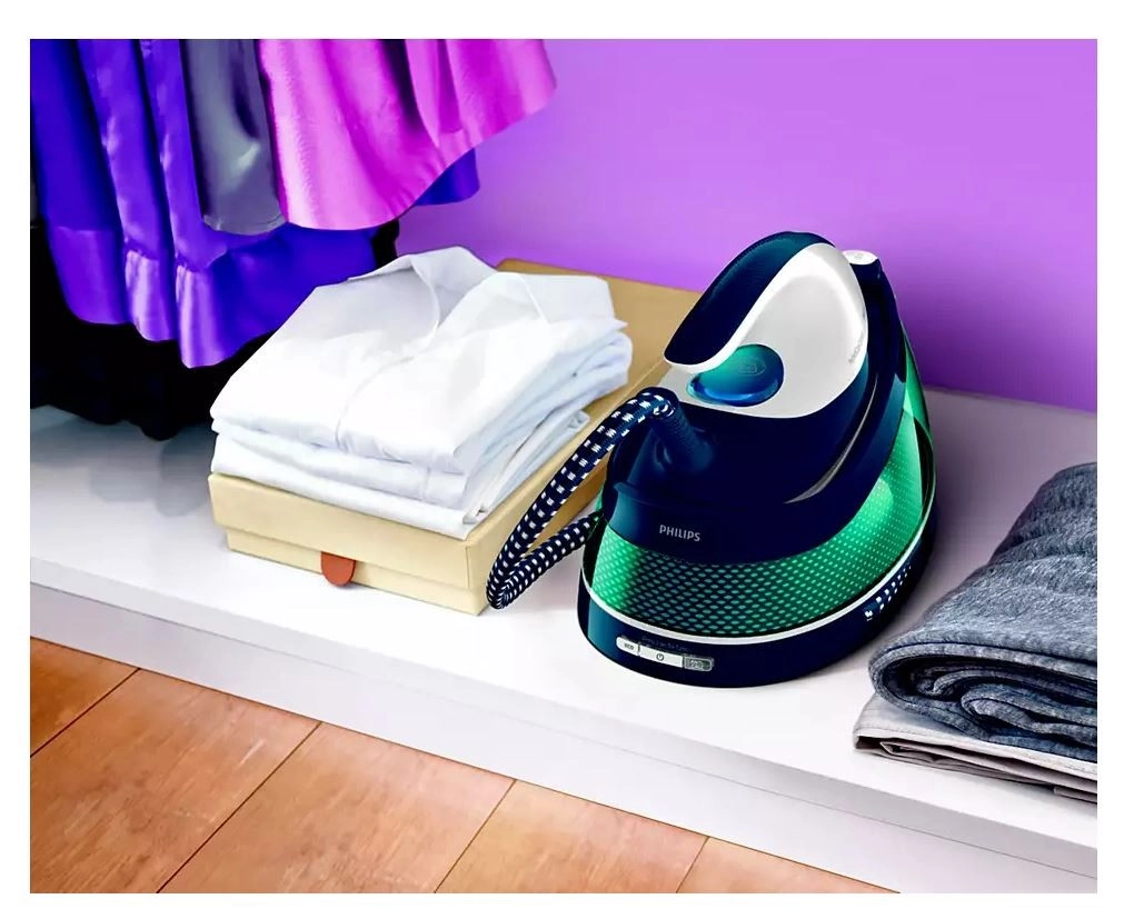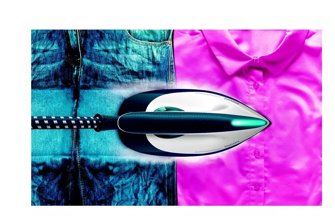 Repassage sans problème - Avec la puissance de la vapeur, le générateur Philips PerfectCare Compact permet un repassage efficace et rapide sans réglage de température. Grâce à la technologie OptimalTEMP, vous n'aurez plus besoin de trier le linge ni d'attendre le chauffage ou le refroidissement du fer.