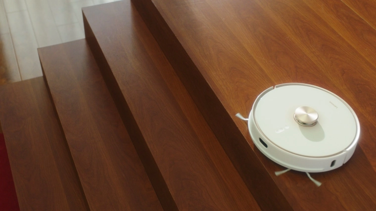 L'aspirateur robotisé Lenovo T1S est équipé de capteurs avancés qui permettent un nettoyage sûr le long des bords et empêchent les chutes dans les escaliers.