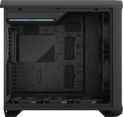 Fractal Torrent est conçu pour offrir un flux d’air exceptionnel grâce à des grilles ouvertes et un intérieur dégagé. Avec deux ventilateurs PWM 180 x 38 mm et trois ventilateurs 140 mm inclus, le Torrent garantit un refroidissement remarquable. Il prend en charge les formats standards de radiateurs et ventilateurs sur le support avant.