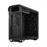 Le boîtier est équipé de ventilateurs de 38 mm d’épaisseur et 180 mm de diamètre, offrant une puissance considérable et assurant un refroidissement optimal. Son design ouvert et adaptable facilite la respiration des composants et des performances élevées, à l’air comme à l’eau.