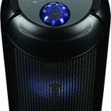 À l’intérieur, on trouve 2 × 4" (102 mm) haut-parleurs avec bass reflex pour des basses plus marquées et des aigus clairs sur la plage 40 Hz – 20 kHz. La batterie Li‑Ion intégrée de 1200 mAh offre 4 à 8 heures de musique, la charge se fait facilement via micro USB. Les commandes comprennent des boutons multimédias, une molette rotative et un écran LED lisible. Le rétroéclairage RGB des haut-parleurs et de la base peut être désactivé par un appui long sur le bouton M.