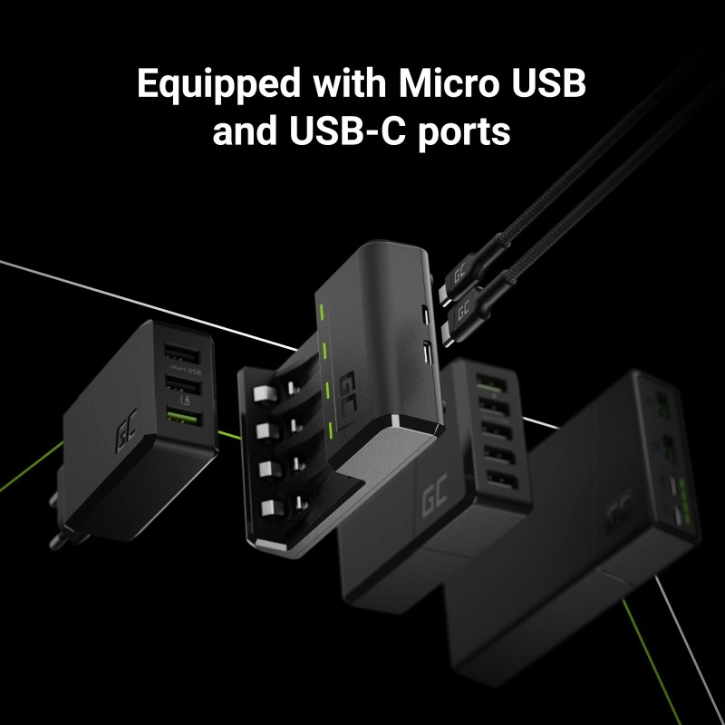 Le chargeur est équipé de ports Micro USB et USB-C, ce qui offre une grande flexibilité de connexion à la source d’alimentation – chargeur secteur, voiture, ordinateur portable ou powerbank. Sa conception bien pensée facilite l’utilisation et assure la sécurité lors de l’insertion et du retrait des batteries.