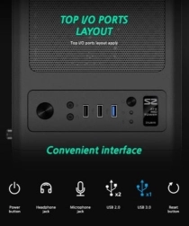 - Refroidissement : emplacement avant pour 120 mm, 3× 120 mm préinstallés