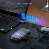 Le port USB‑C avec Power Delivery 3.0 assure une alimentation de l’ordinateur portable jusqu’à 100 W (sans transfert de données), pour un seul câble à brancher. Lecteurs SD et microSD intégrés pour des sauvegardes rapides depuis les appareils photo, et combo jack 3,5 mm pour casque ou micro. Le boîtier en aluminium durable dissipe efficacement la chaleur et offre une esthétique élégante.