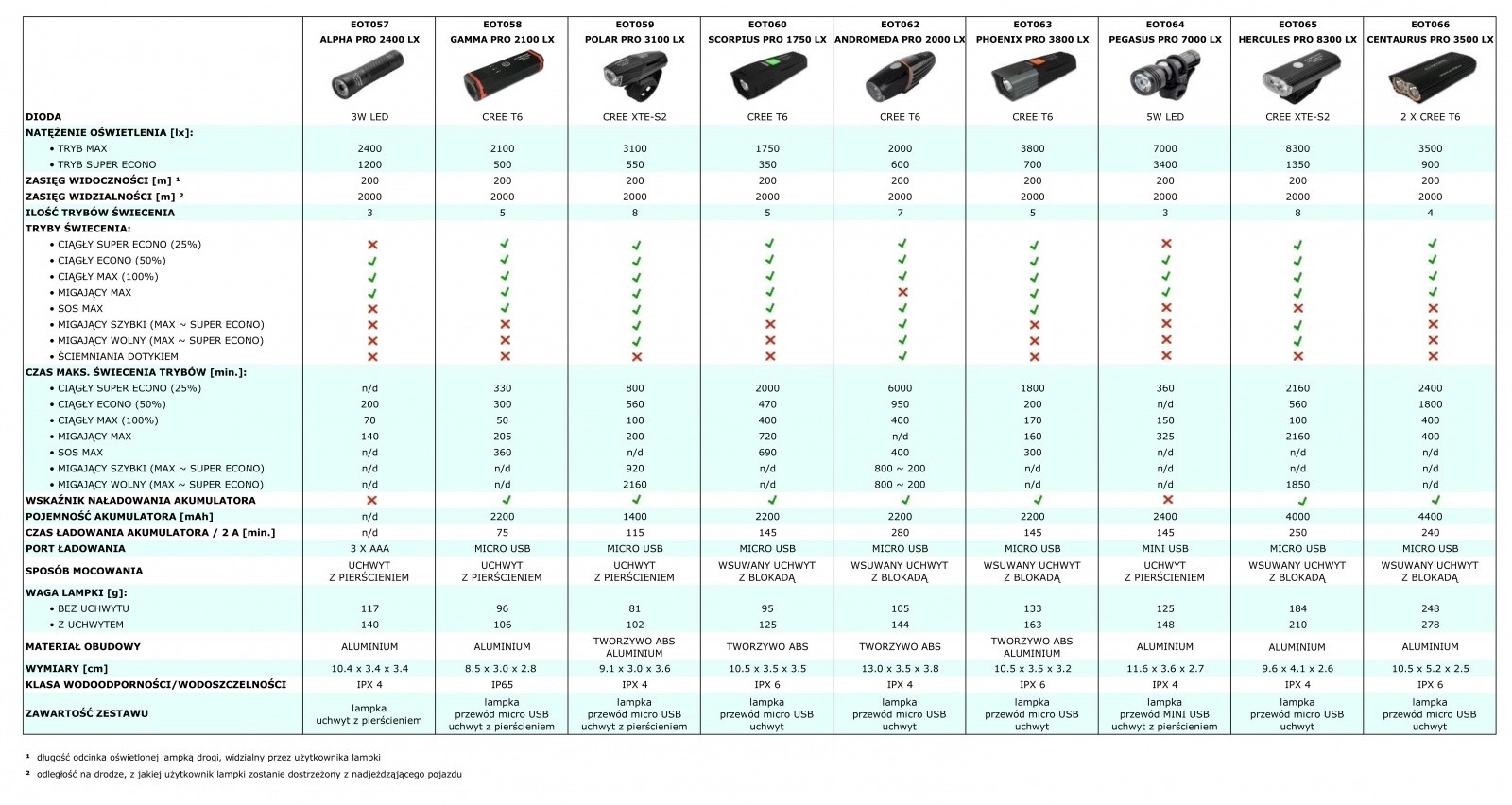- jusqu’à 200 m d’éclairage visible ; visibilité pour les autres jusqu’à 2000 m