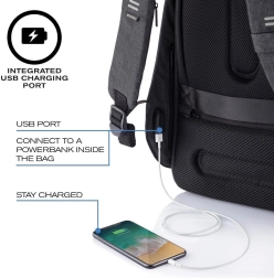 Sécurité et style réunis : le sac à dos XD DESIGN Bobby Hero Regular est conçu pour protéger vos affaires en ville comme en voyage. Grâce aux fermetures éclair dissimulées, aux poches discrètes avec protection RFID et au matériau résistant aux coupures, vos objets de valeur restent sous contrôle. La finition déperlante et le dos respirant avec bretelles ergonomiques assurent un confort tout au long de la journée.