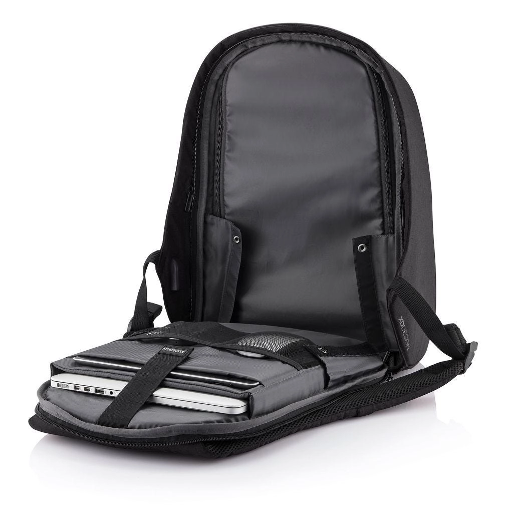 Voyagez et faites la navette en toute sécurité avec le sac à dos XD DESIGN Bobby Hero XL en élégant noir. Il offre une construction antivol s’ouvrant depuis le dos, des fermetures éclair dissimulées et des poches RFID, un matériau résistant aux coupures et à l’eau, des bretelles ergonomiques et une organisation intérieure généreuse avec des espaces pour un ordinateur portable 17″ et une tablette 12,9″. Un port USB intégré, des éléments réfléchissants et un matériau en RPET recyclé en font un choix idéal pour la ville comme pour le voyage.