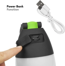 La fonction powerbank permet de recharger un téléphone, smartphone ou tablette via le port USB de la lampe, ajoutant un niveau supplémentaire de commodité et d'utilité.