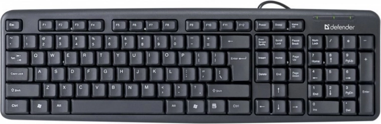 Le clavier de bureau Defender Element, dans une élégante couleur noire, offre une disposition complète, une construction renforcée et durable et une inclinaison réglable pour une frappe confortable ; grâce au plug & play il fonctionne sans pilotes et sa conception plate économise de la place sur le bureau.
