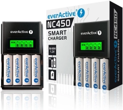 Le chargeur noir everActive NC-450 est fabriqué en plastique ABS de qualité, garantissant une grande durabilité et une apparence esthétique. Il est équipé de 4 canaux de charge indépendants, permettant de charger différentes capacités et tailles de piles Ni-MH (AAA/R03 et AA/R6).
