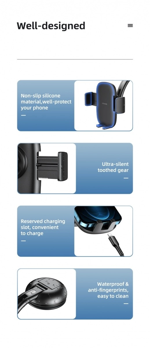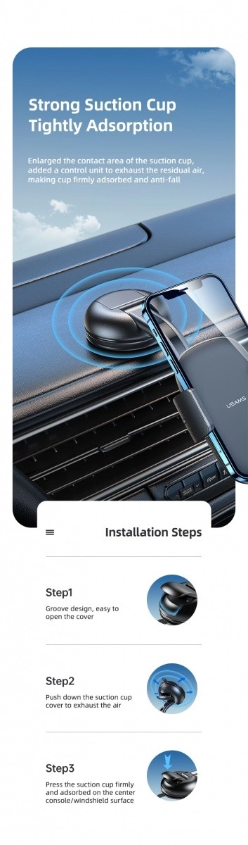Le support est équipé d’un bras télescopique et d’une ventouse stable, garantissant une fixation solide et la sécurité du téléphone. Grâce à sa surface en silicone antidérapante, il protège votre téléphone contre les rayures et les dommages. Le support peut être facilement monté sur le tableau de bord ou le pare-brise, offrant une flexibilité d’installation et une utilisation pratique.
