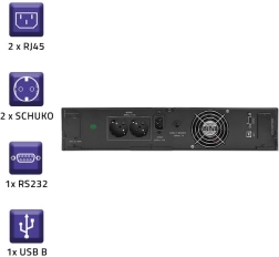 Conçu pour des environnements à forte charge. Il dispose de plusieurs entrées et sorties, d’un ventilateur et d’éléments de protection, y compris USB et disjoncteurs.