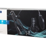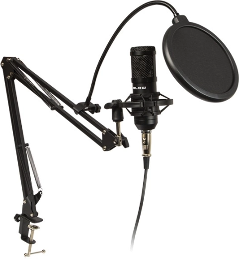 Microphone de studio de haute qualité de la marque Blow avec accessoires complets permettant une utilisation immédiate. Le microphone avec connexion USB est idéal pour l'enregistrement audio sur ordinateur ou portable, le streaming et d'autres usages.