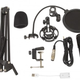• Ensemble complet : comprend câbles, adaptateur, support, cache en mousse, filtre anti-pop et éléments de montage.