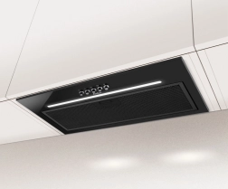 La hotte encastrable noire s’intègre parfaitement aux intérieurs de cuisine modernes. Son apparence discrète s’harmonise facilement avec les meubles hauts.