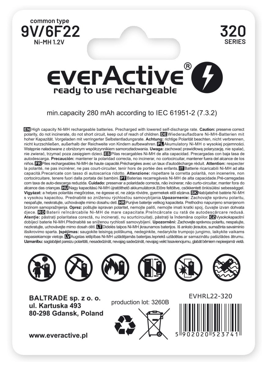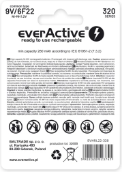 Batterie rechargeable everActive 9V 320 mAh Ni-MH est un choix idéal pour un usage professionnel. Grâce à la technologie « prête à l’emploi », c’est une excellente alternative aux piles alcalines.