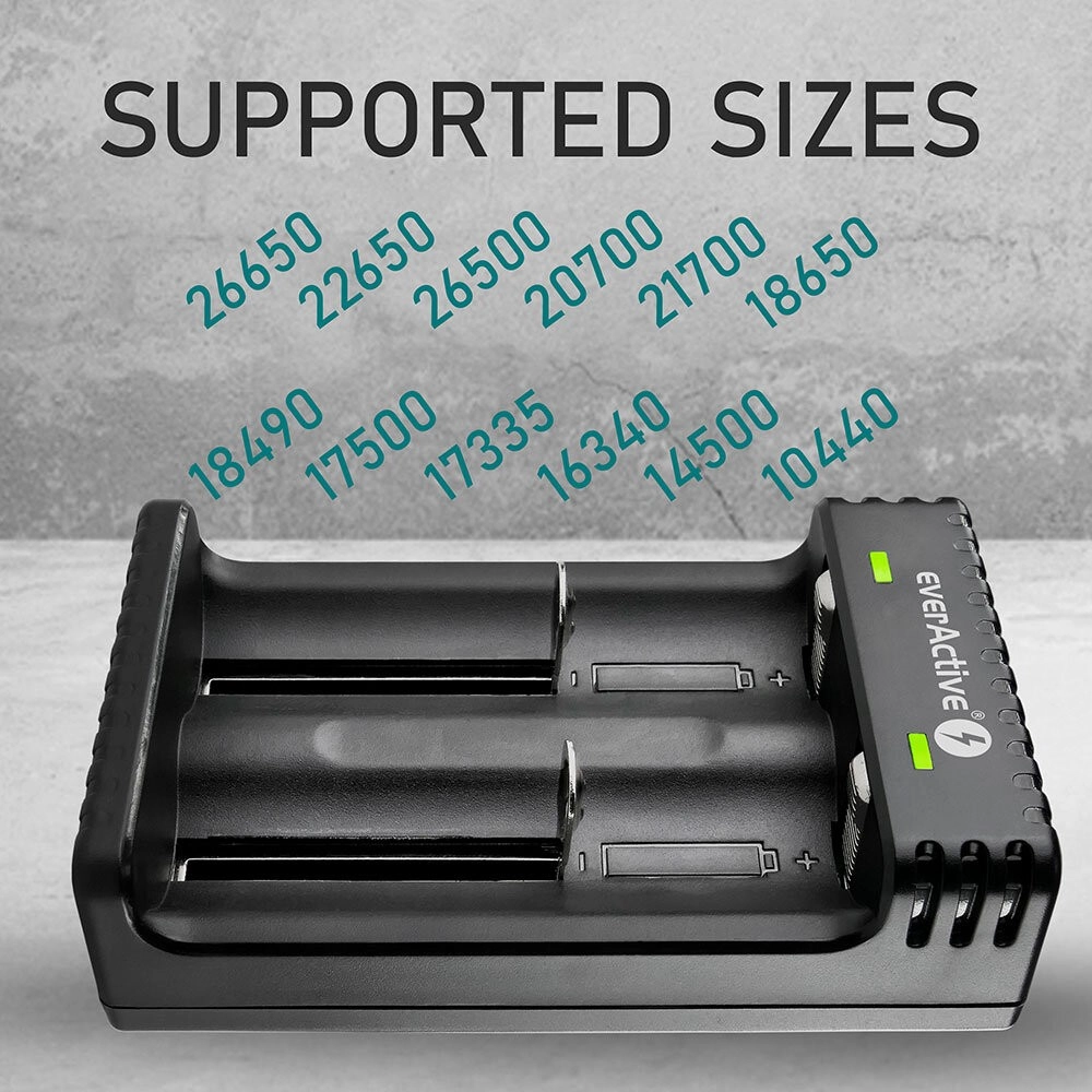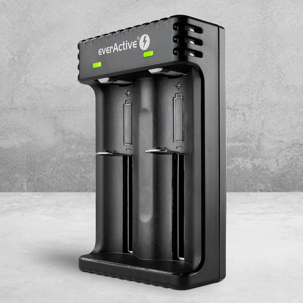 Le chargeur everActive LC-200 est développé pour la recharge des accumulateurs Li‑ion cylindriques populaires, assurant une charge sûre et rapide de la plupart des accumulateurs d’une tension de 3,6 V / 3,7 V. Cette unité compacte et petite intègre un circuit spécialisé qui permet de charger des batteries telles que les populaires 18650, y compris les versions « longues » avec protection électronique.