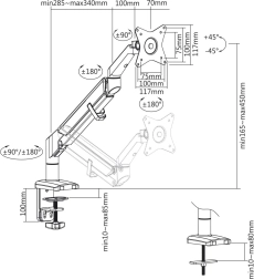 Le support ergonomique pour moniteur offre une excellente solution pour le bureau comme pour la maison. Il permet une installation facile grâce aux normes VESA 75x75 et 100x100 mm. À l’aide du vérin à gaz et des articulations réglables, il propose l’inclinaison, la rotation et l’ajustement en hauteur, ce qui augmente le confort et la visibilité pendant le travail. Atouts du support :