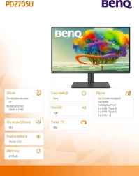 Découvrez des images détaillées et des couleurs fidèles sur une dalle IPS 27" en 4K, idéale pour le design graphique, la retouche photo et la vidéo. Le BENQ PD2705U offre un affichage homogène sur toute la surface et des angles de vision stables. Grâce au temps de réponse de 5 ms et au rétroéclairage de qualité, l’image est fluide et nette.