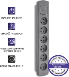 Trouvez de la place pour tous vos appareils avec cette barre de distribution grise offrant six prises et une longueur de câble de 1,8 mètre. Idéale pour une utilisation dans les foyers et les bureaux, où vous avez besoin d'organiser efficacement les câbles.