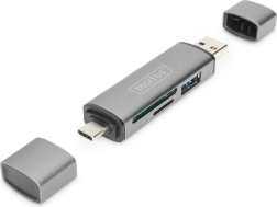 Lecteur de cartes 3 ports USB Type C/ USB 3.0 SuperSpeed SD Micro SD Digitus gris