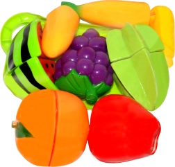 Ce set de fruits à découper offre aux enfants une expérience réaliste de préparation des aliments, en toute sécurité. Chaque morceau de fruit est muni d’un scratch, ce qui permet de le « couper » facilement avec le couteau en plastique fourni, puis de le reconnecter. Les enfants entraînent ainsi de manière ludique leur motricité fine, leur coordination œil–main et développent leur imagination en jouant au petit chef.