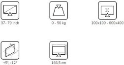 Pour écrans de 37–70" avec une charge jusqu’à 50 kg et une compatibilité VESA de 100×100 à 600×400 – une solution universelle pour la plupart des TV et moniteurs.