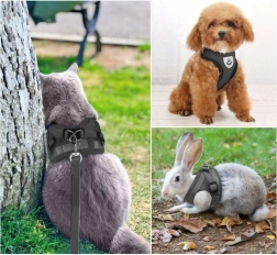 Grâce à ses larges possibilités de réglage, vous adaptez facilement le harnais aux morphologies de petits chiens, chats et lapins. Le rembourrage doux prévient les irritations et laisse la peau respirer, tandis que les boucles robustes et l’anneau métallique pour attacher la laisse garantissent une tenue fiable.