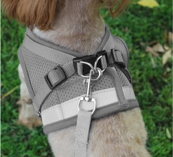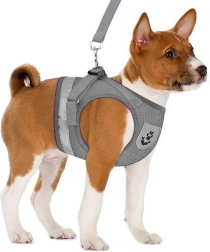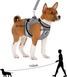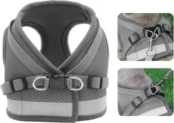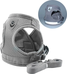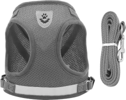 Le harnais sans pression de couleur grise est conçu pour les chiens, les chats et les lapins. Le tissu léger et respirant avec un rembourrage doux assure un confort sans frottements et laisse la peau respirer. Les sangles réglables s'adaptent facilement au corps de l'animal pour que le harnais tienne bien en place sans restreindre ses mouvements.