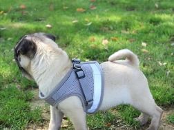 Le harnais anatomique répartit uniformément la traction sur la poitrine, n'irrite pas et ne gêne pas. La maille respirante et le rembourrage doux augmentent le confort même lors de promenades plus longues.