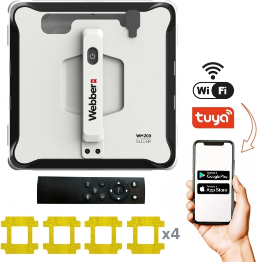 Profitez de vitres impeccables sans effort – le nettoyeur de vitres robotisé Webber avec commande via Android/iOS et télécommande gère le nettoyage à sec et humide, dispose d’une aspiration puissante de 3000 Pa, de la détection automatique des bords et de 5 capteurs de sécurité. Grâce à son réservoir intégré de 90 ml et à une vitesse de 2,5 min/m², il assure un nettoyage efficace même en hauteur et revient à sa position initiale une fois terminé.