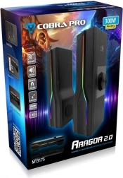 Cobra Pro Aragor 2.0 est un ensemble de haut-parleurs stéréo deux voies avec une puissance RMS de 8W. Grâce à sa flexibilité, il peut être configuré comme une paire de haut-parleurs 2.0 séparés ou combiné en une seule barre de son de jeu. Ce système assure une reproduction sonore fidèle qui plaira non seulement aux joueurs mais aussi aux amateurs de musique et de films.