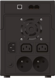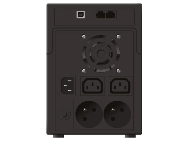 L’UPS est équipé de deux prises 230 V (Schuko) et de deux sorties IEC pour connecter facilement plusieurs appareils. La protection RJ11/RJ45 (IN/OUT) sécurise les lignes téléphoniques et de données contre les surtensions, et via l’interface USB il est possible de surveiller et de gérer l’appareil. Un choix idéal pour une alimentation fiable à la maison comme dans un petit environnement de bureau.