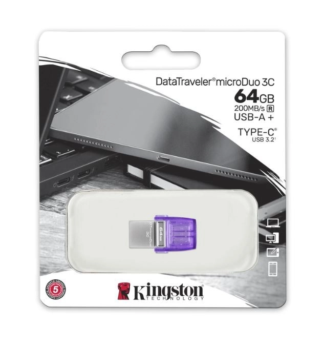 La DataTraveler microDuo 3C est une solution de stockage pratique pour le quotidien comme pour le voyage. Grâce aux connecteurs USB‑C et USB‑A, vous transférez facilement photos, vidéos et documents entre smartphone, tablette et ordinateur, sans câble ni Internet. L’interface USB 3.2 Gen 1 assure une manipulation fluide des gros fichiers.
