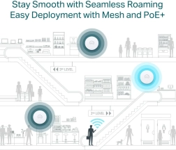 L’appareil prend en charge la largeur de canal de 160 MHz, doublant la quantité de données transmises par flux via HE160. Avec le roaming précis, ni les flux vidéo ni les appels ne sont interrompus lorsque les utilisateurs se déplacent. Grâce à la fonction Omada Mesh, les points d’accès peuvent être interconnectés sans fil, offrant une large couverture réseau et une grande flexibilité d’emplacement.