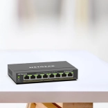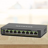 Commutateur compact et silencieux pour petites et moyennes entreprises avec 8× Gigabit Ethernet, PoE+ offrant 123 W et gestion de base. Il permet d’alimenter et de connecter des caméras IP, des téléphones VoIP ou des points d’accès Wi‑Fi avec un seul câble, propose un commutateur non bloquant, un contrôle PoE avancé et un montage sur bureau, mur ou en rack.